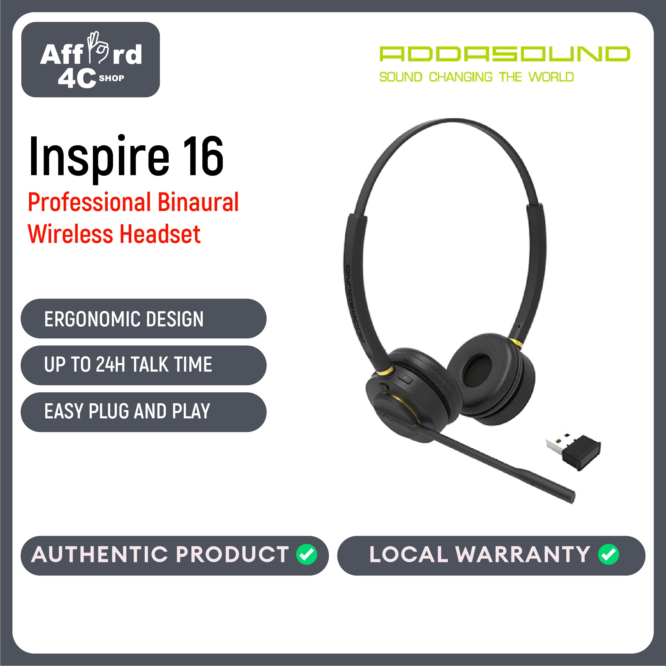 Addasound Inspire16 Binaural Wireless Headset Professional Wireless Headset for Office and Work from Home