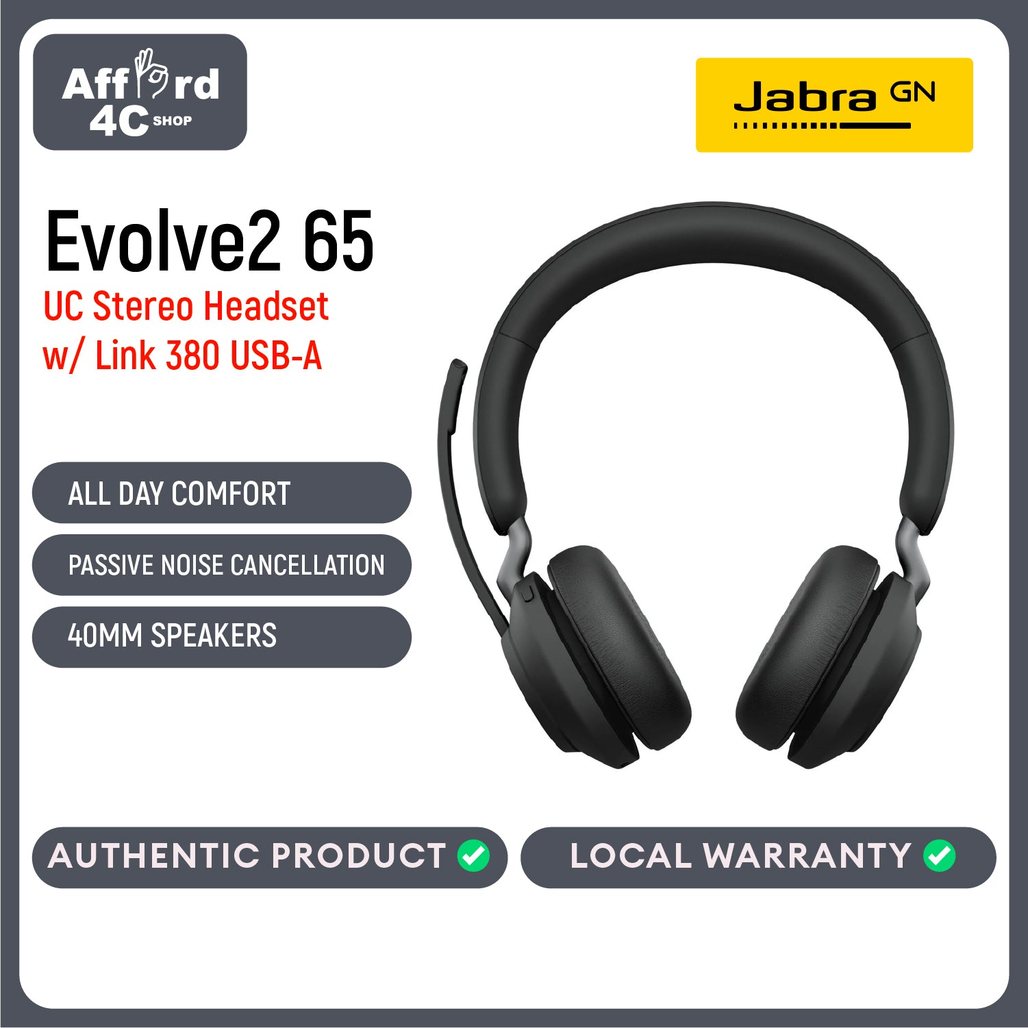 AFFORD 4C Shop Jabra Evolve 20 UC USB-A or USB-C/A Stereo Headset