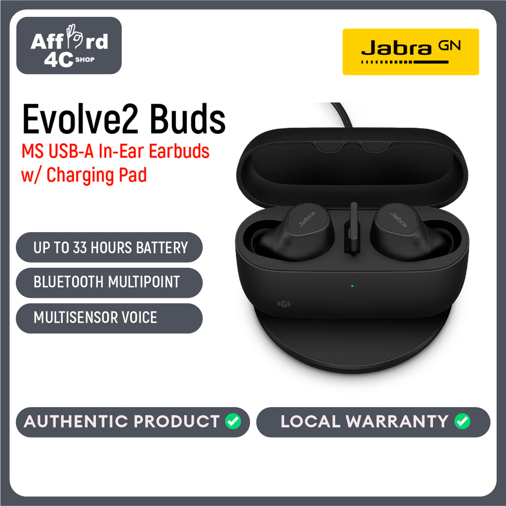 Jabra Evolve2 Buds, Active Noise Cancellation, Wireless Bluetooth Earbuds With Link 380 USB-A Wireless Adapter