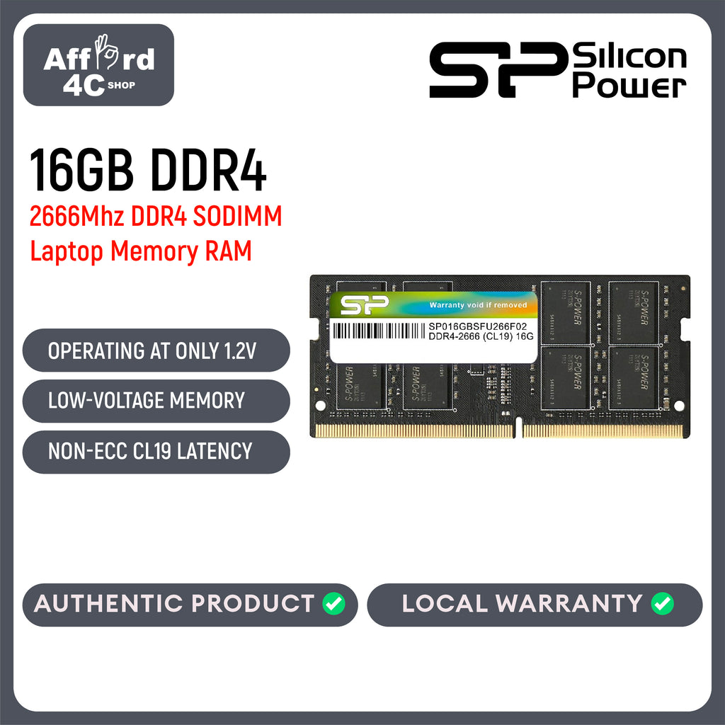 Silicon Power 16GB 2666Mhz DDR4 Non-ECC CL19 SODIMM Laptop Memory RAM