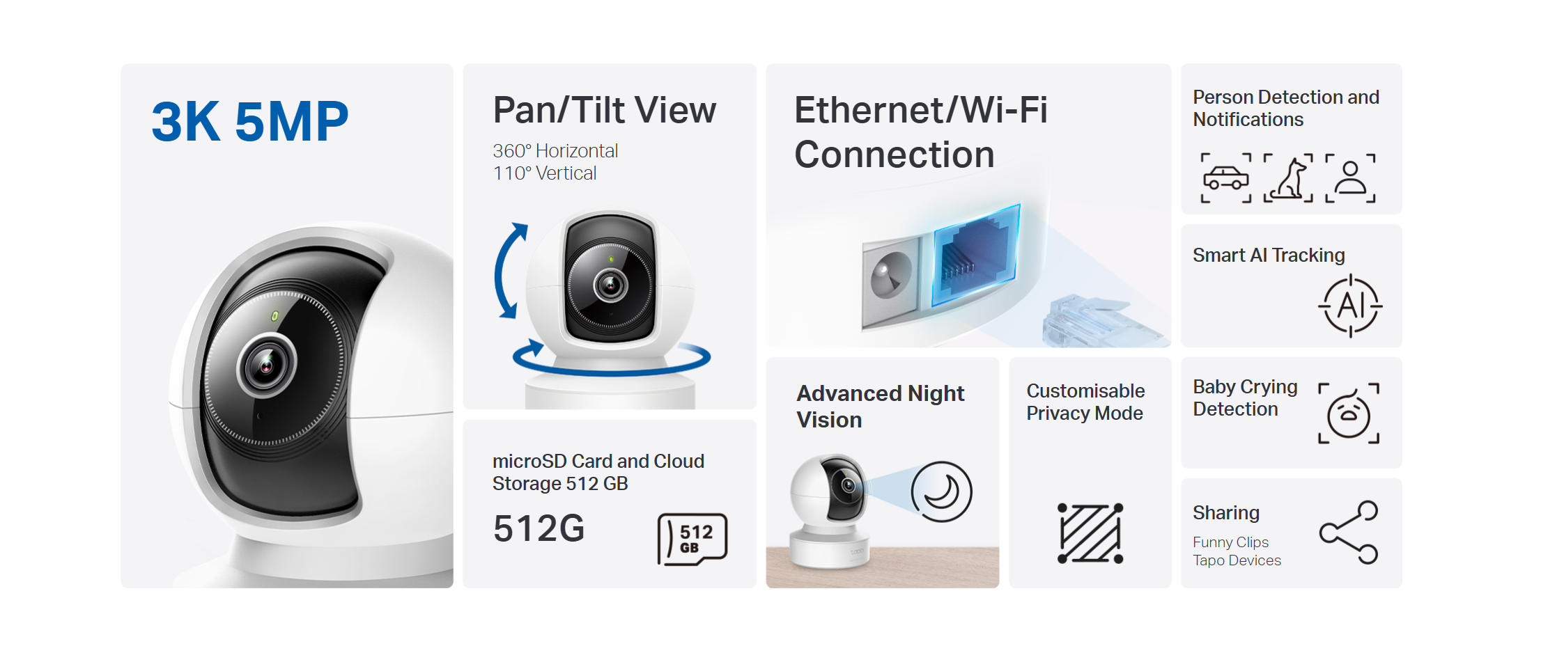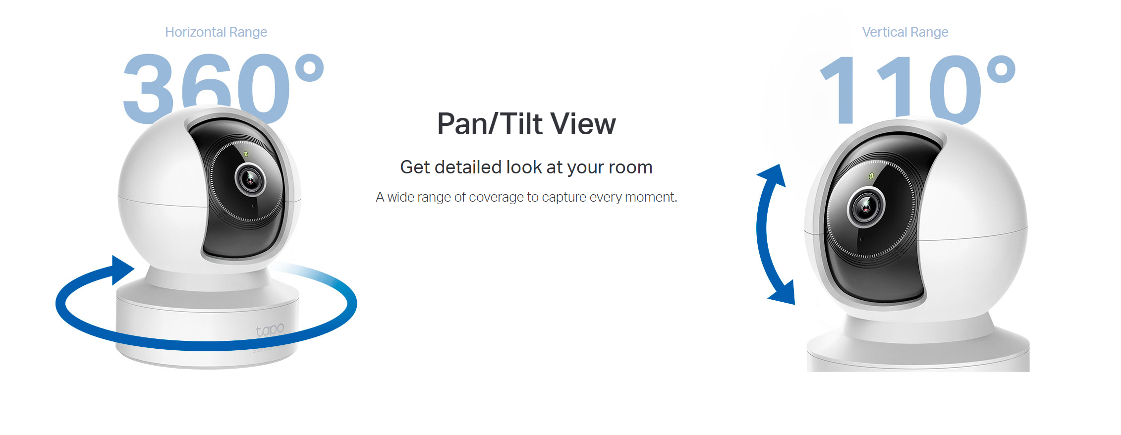 Wide Range of Movement: Enjoy a full 360º horizontal and 110º vertical range for pan and tilt, allowing you to cover more area.