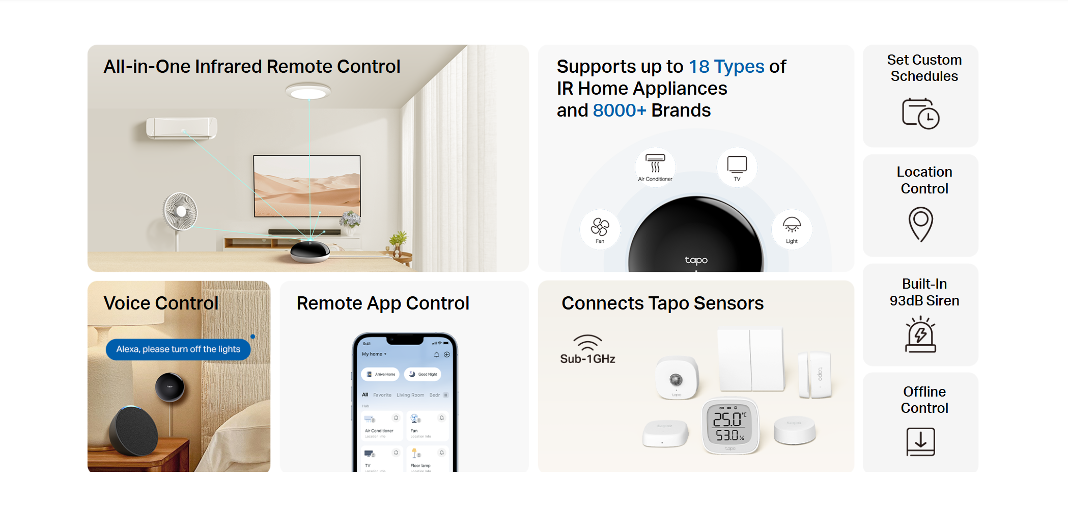 Offline Control - Even if the external network disconnects, the hub remains controllable via the Tapo app as long as your smartphone and hub are on the same LAN.