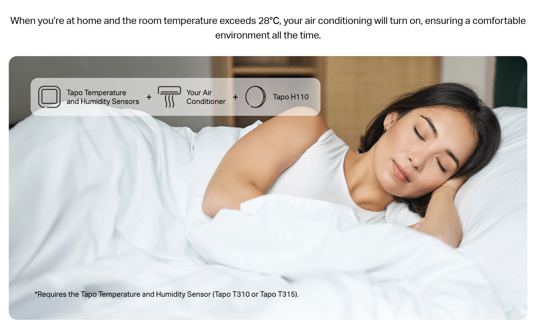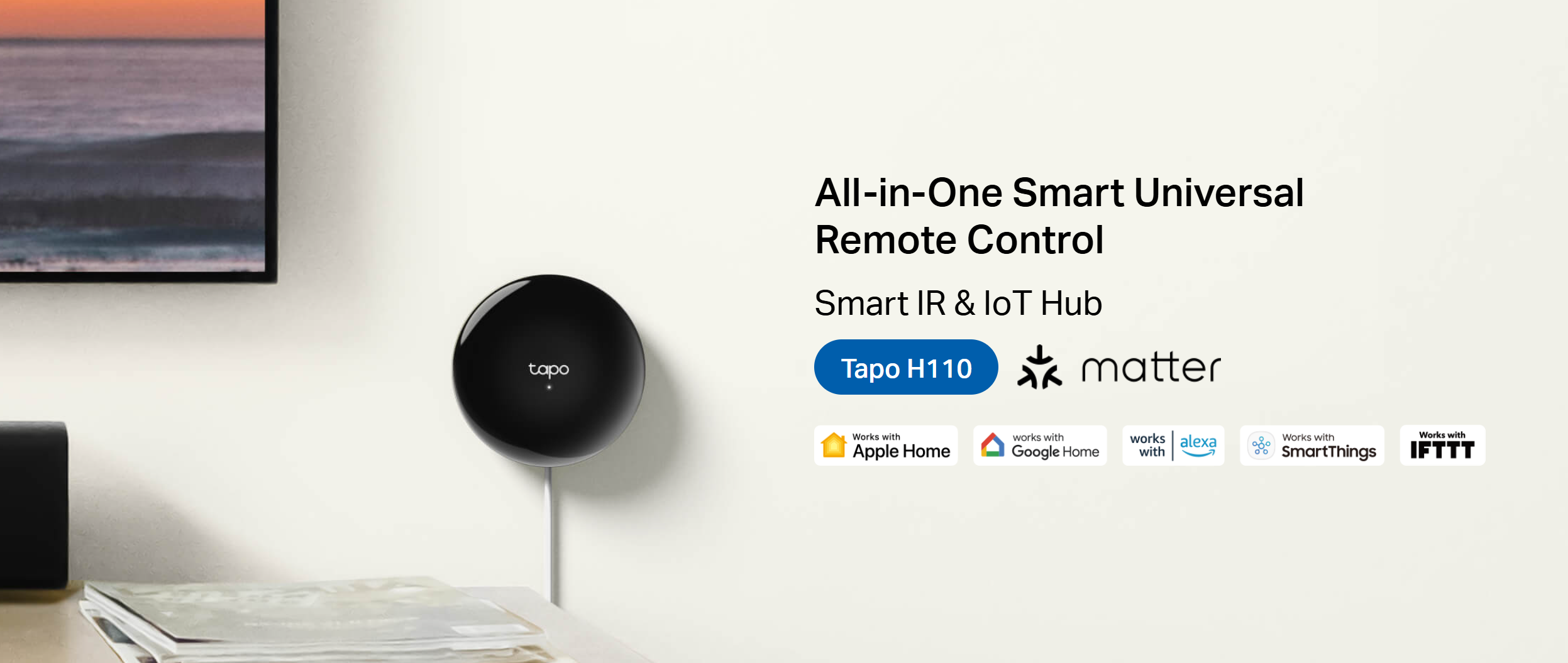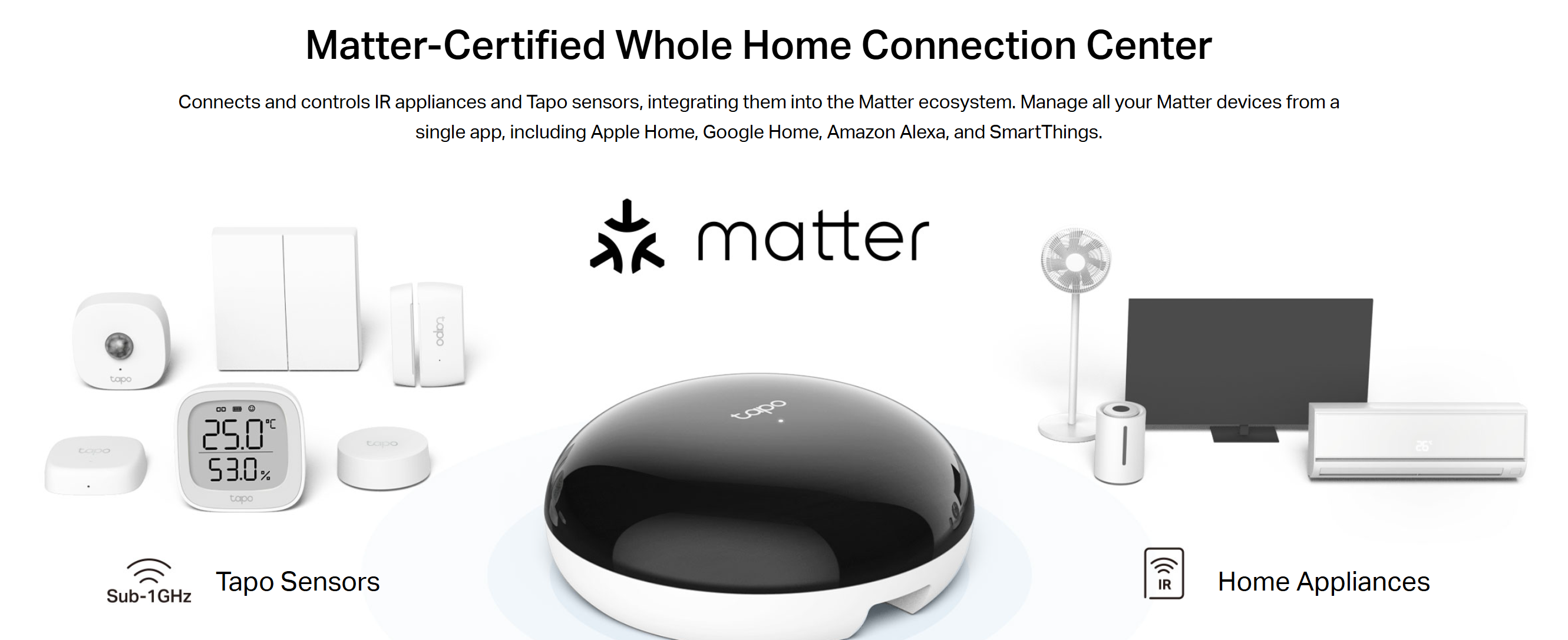 Matter-Certified Connection Center - Connects and controls IR appliances and Tapo sensors, integrating them into the Matter ecosystem.*